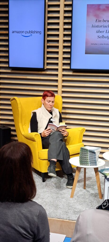 Auf zur Halle 1.2 warum? Na, Ursula Poznanski las aus „Erebos 3“, das kann man sich doch nicht entgehen lassen. Ihr etwa? Sie strahlte. Las vor, beantwortete Fragen. Zum Beispiel zu KI.