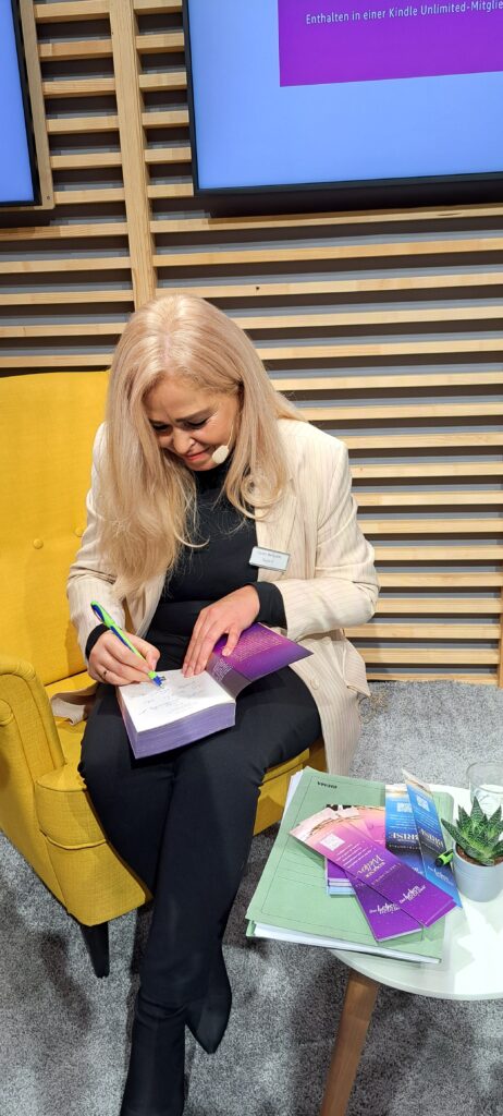 Beim Vorbeilaufen, denke ich so, hey das ist doch Diana. Tatsächlich. Ich habe Diana Ahrabian gefunden. Welcher Glücksfall. Ich hatte dann noch ein sehr gutes Gespräch mit den Verlagseignern. Danke dafür. 💞