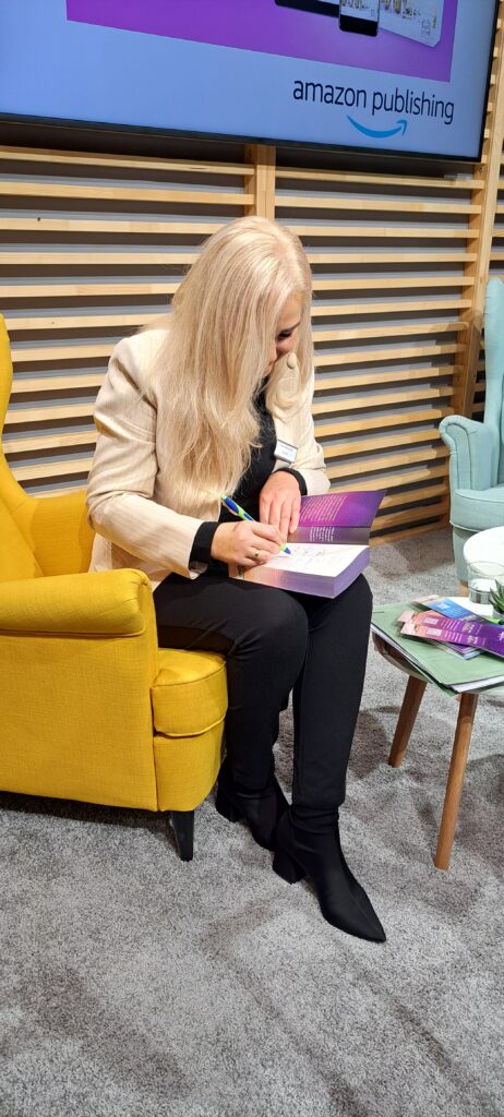 Bei Amazon Publishing traf ich dann auf Anja Saskia Beyer. Ich habe keine Ahnung warum aber es schien gerade so, als ob alle super gelaunt waren. Auch Anja war wundervoll. Ich ließ das Buch dann für meine Freundin Rebecca signieren, weil sie es zeitlich nicht geschafft hat.