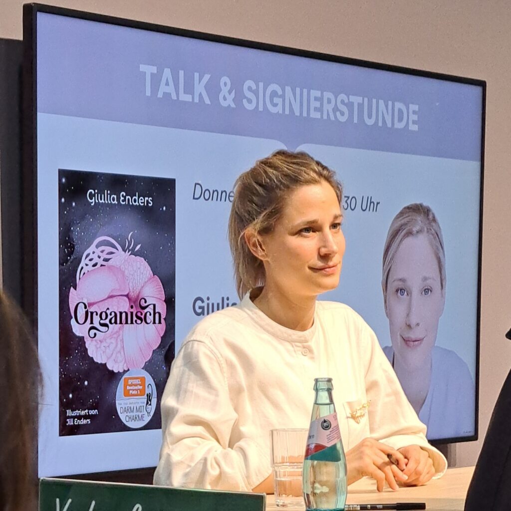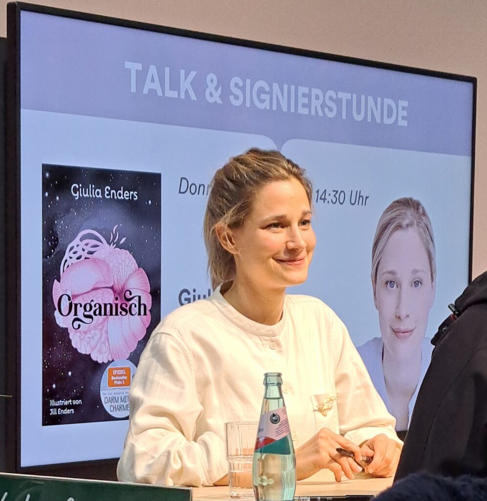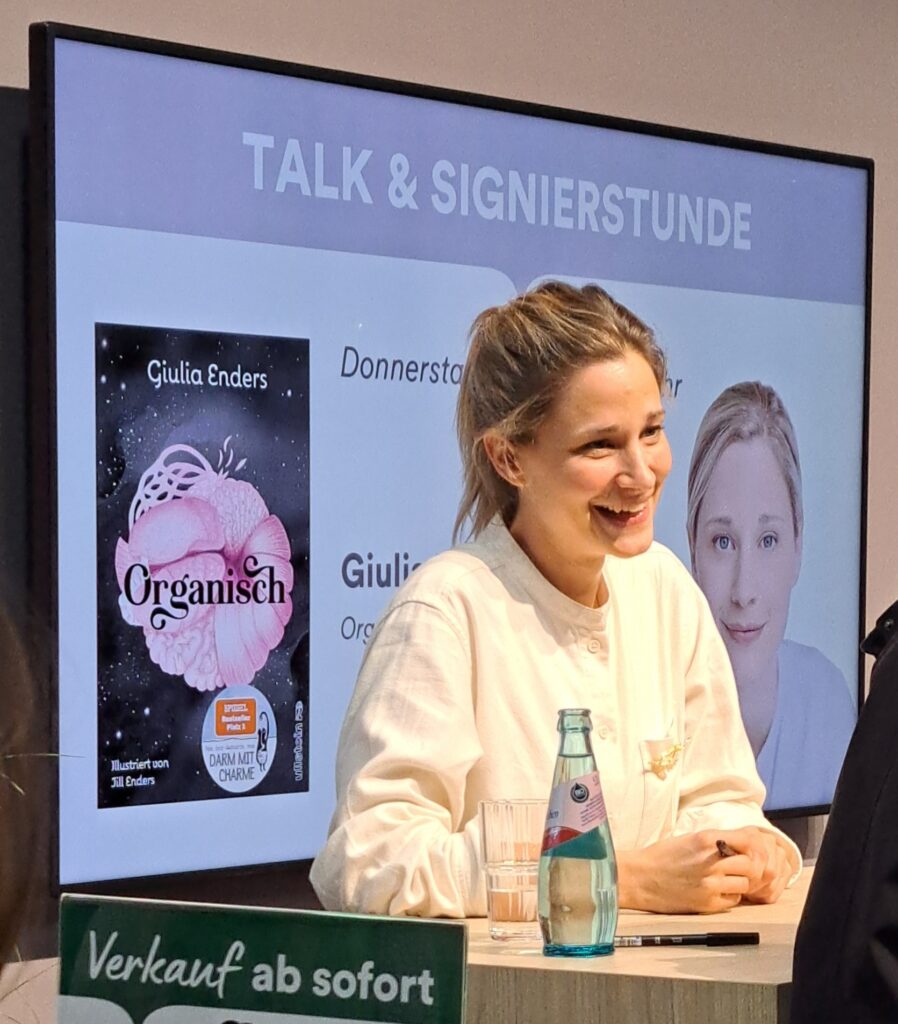 Giulia Enders mit ihrem Buch „Organisch“ war am Thalia Stand. Diese Ausstrahlung. So ein sanftes Gesicht. Wahnsinn. Ich sehe sie zum Glück nochmals in Stuttgart wieder, zu den Stuttgarter Buchwochen. Davon werde ich euch berichten.