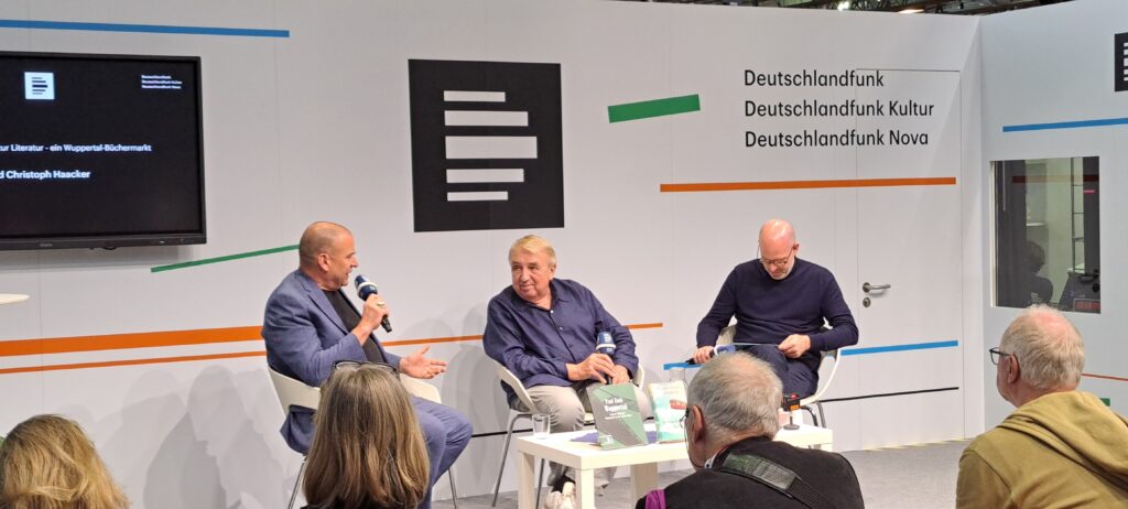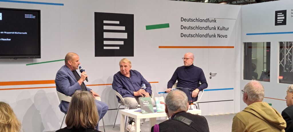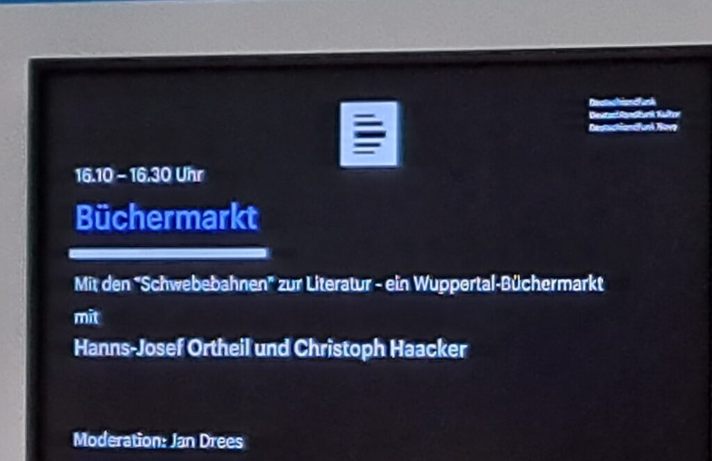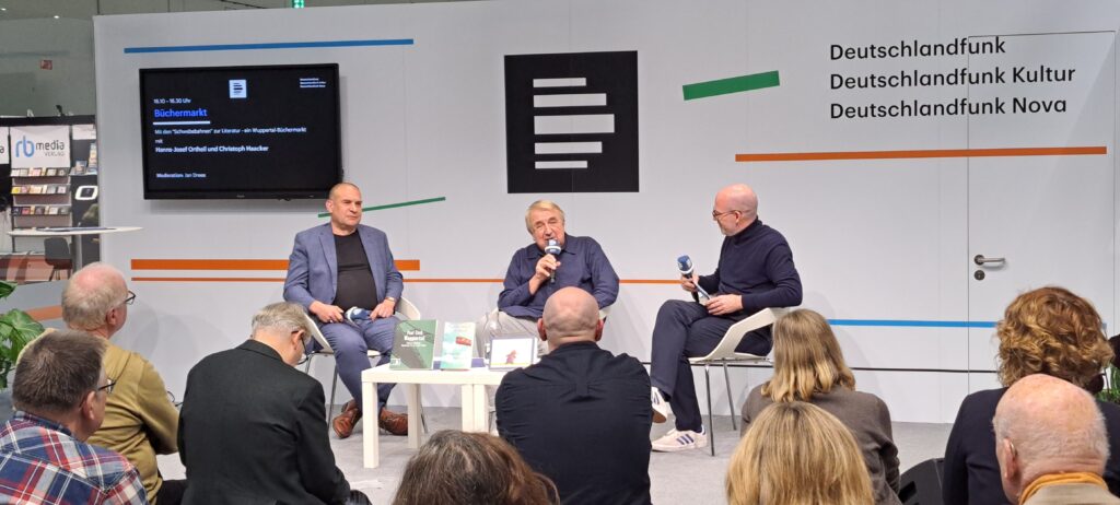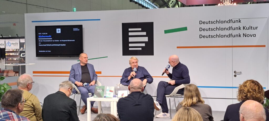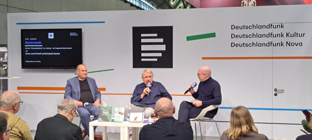 In Halle 3.0 ging es dann zu Hanns-Josef Ortheil. Er sprach über sein Buch „Schwebebahnen“. Ein netter Herr mit tiefen Lachfalten, die ihn sofort sympathisch machen. Das Buch steht auf meiner Wunschliste.