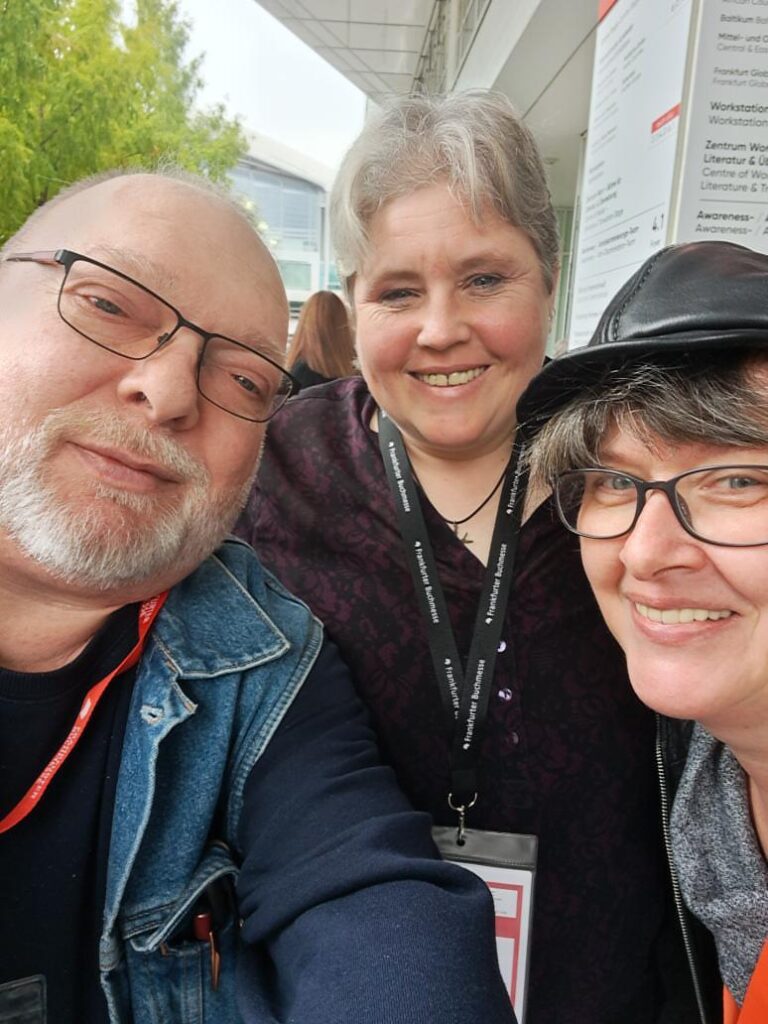 Ganz ganz wichtig war in Halle 3.1 mein liebster Verleger und mein liebster Autor. Die Zwei sind ein Dreamteam. Gerd Fischer und Thorsten Fiedler. Herzlichen Glückwunsch zum 10 jährigen bestehen des „Mainbook Verlag“. Es ist mir eine Ehre euch zu kennen. Sie sind beide besondere Menschen. Bilder kommen an einem anderen Tag. 🙂