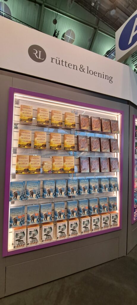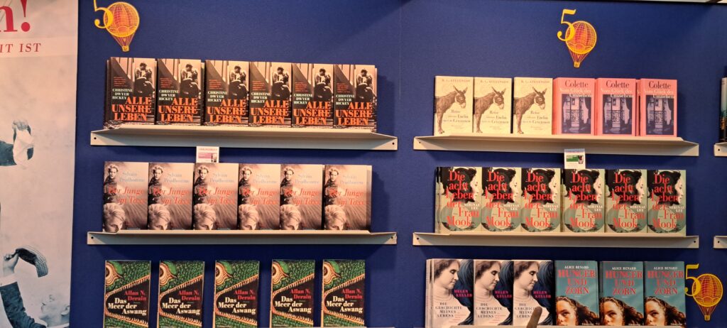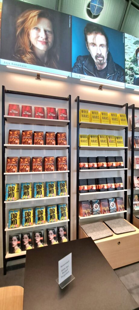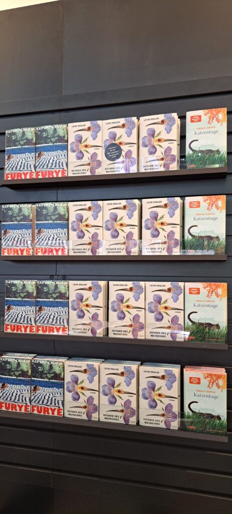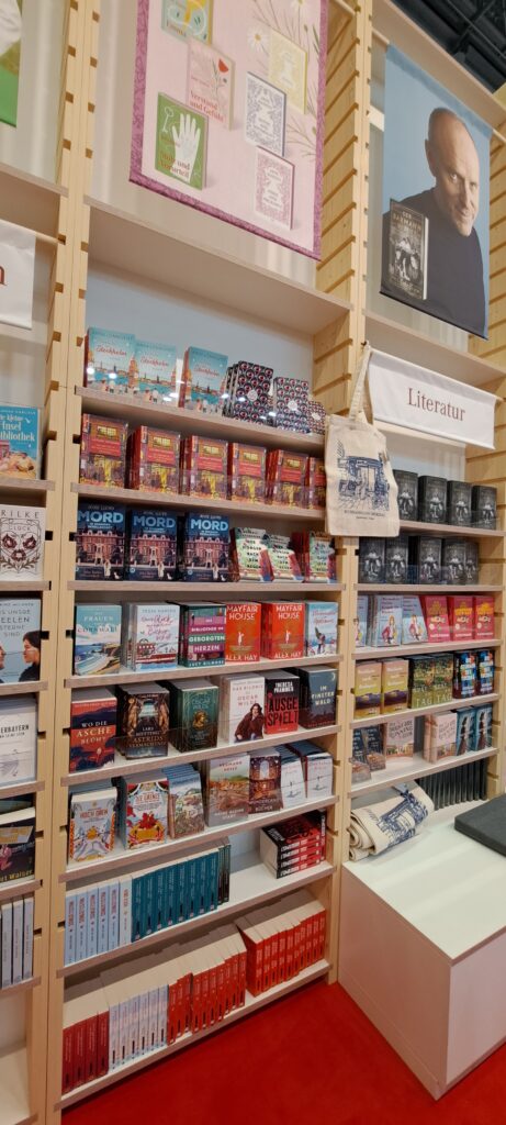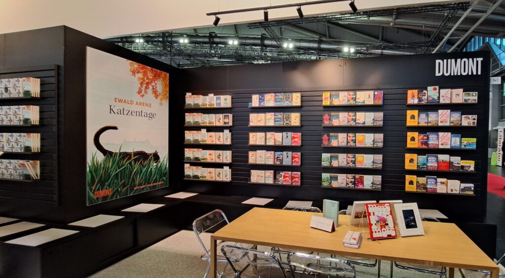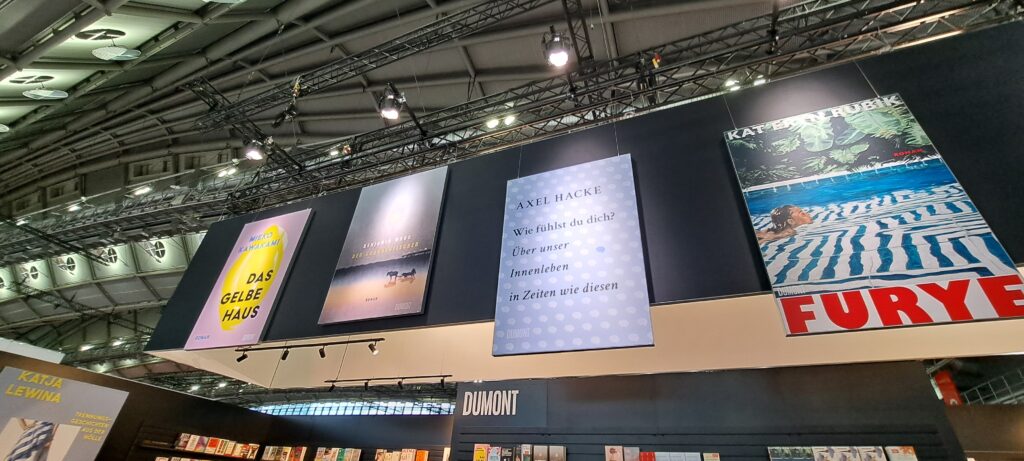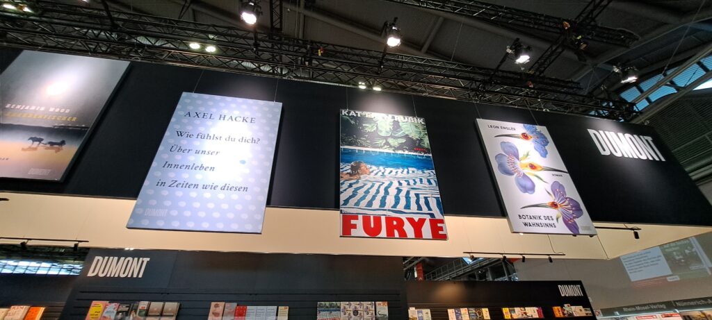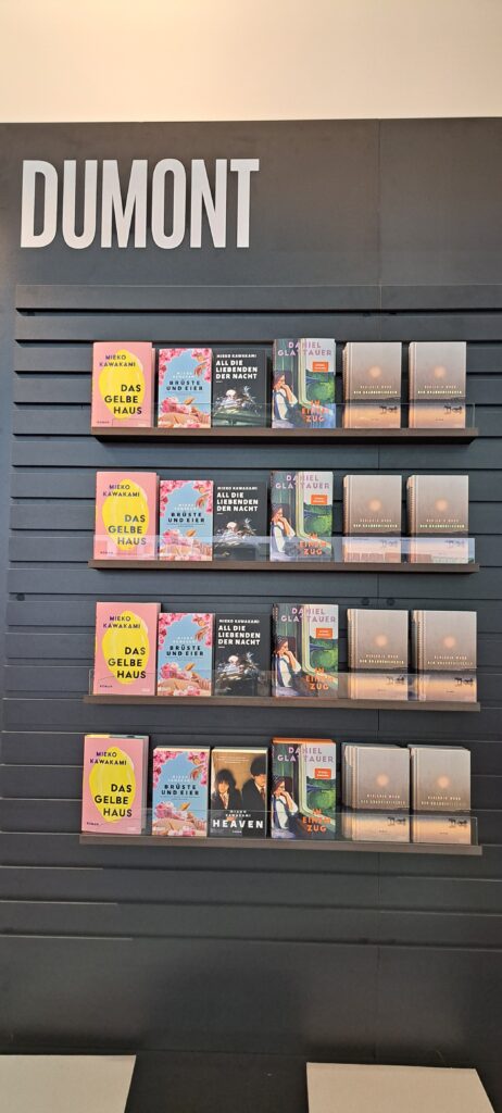 Hier beim „Dumont Verlag“ traf ich nochmal Liesa. Sie war nur noch am heutigen Tag da. Ich stöberte in den Büchern. Ach, da sind so einige Bücher die mir gefallen. Vier davon habe ich fotografiert.
