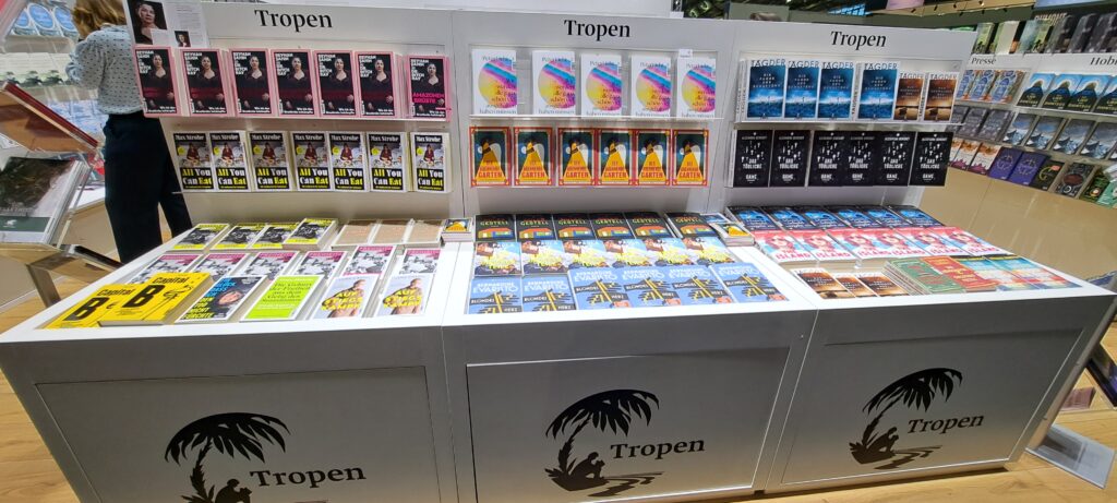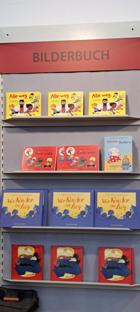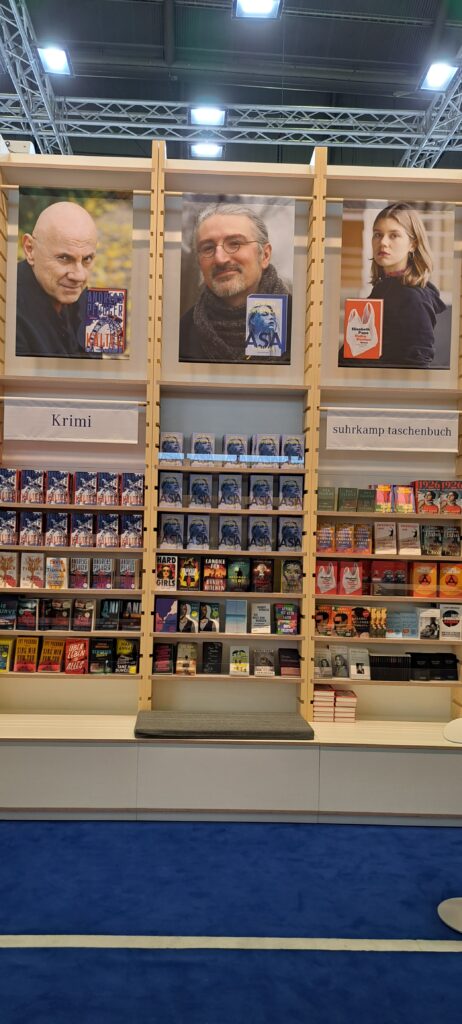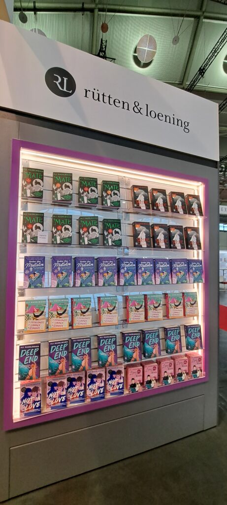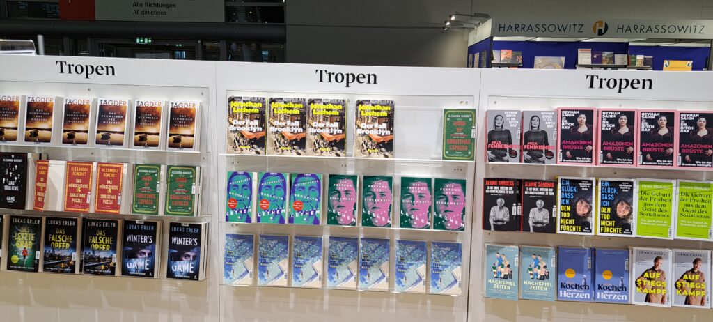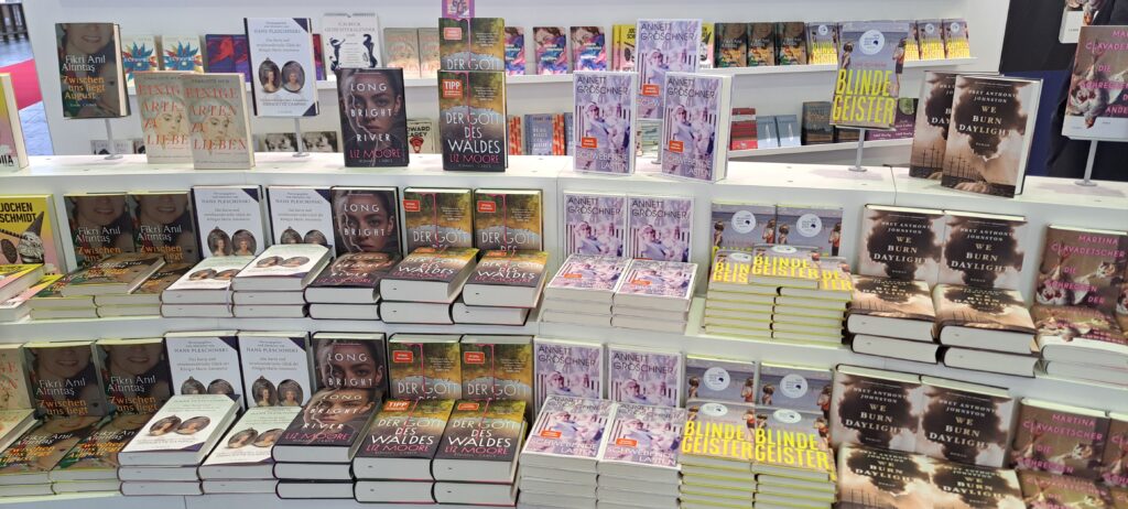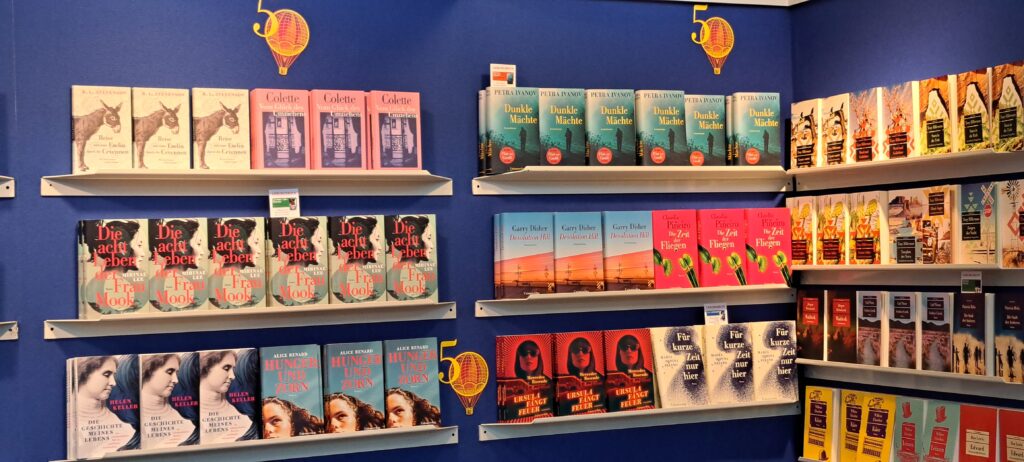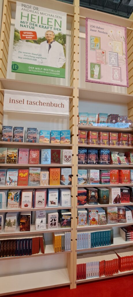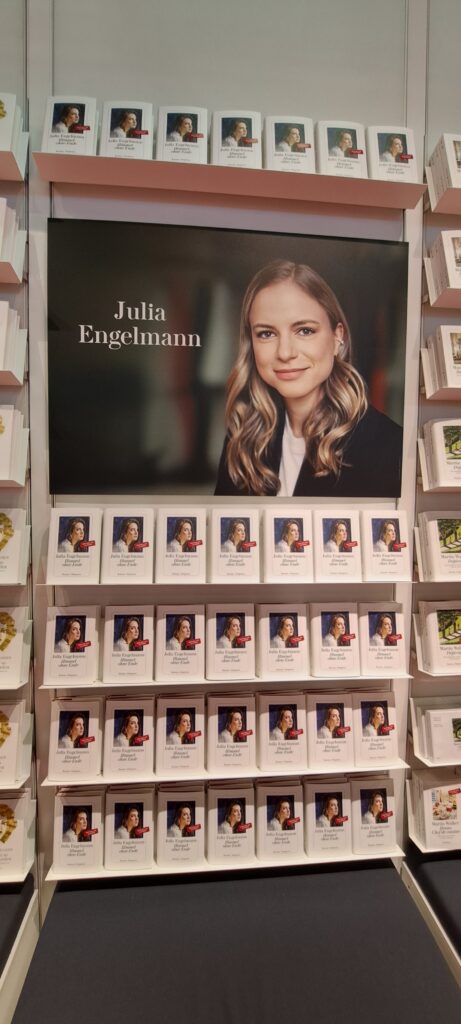 Hier beim „Dumont Verlag“ traf ich nochmal Liesa. Sie war nur noch am heutigen Tag da. Ich stöberte in den Büchern. Ach, da sind so einige Bücher die mir gefallen. Vier davon habe ich fotografiert.
