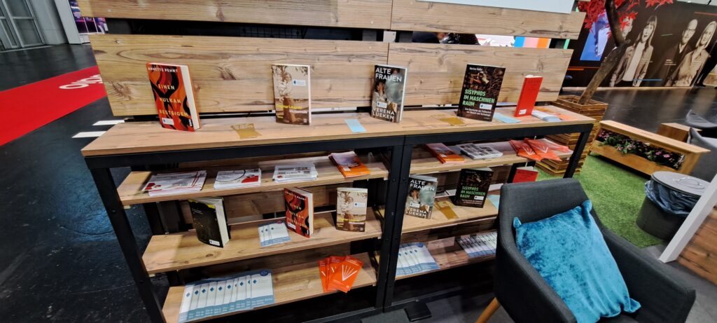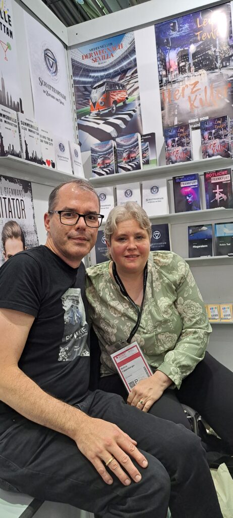 Beim „Mainbook Verlag“ trafen wir viele tolle Leute. Leider weiß ich nicht alle Namen. Habe aber Gerd gelöchert. Er hat es mir dann verraten. 😁
