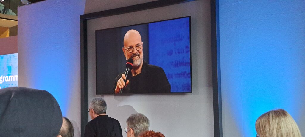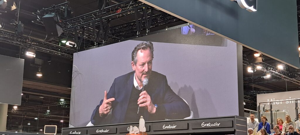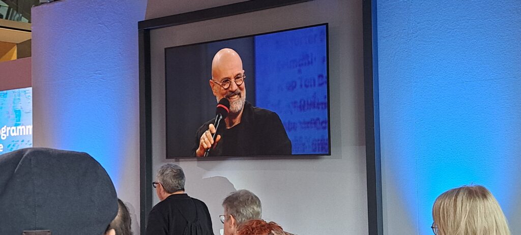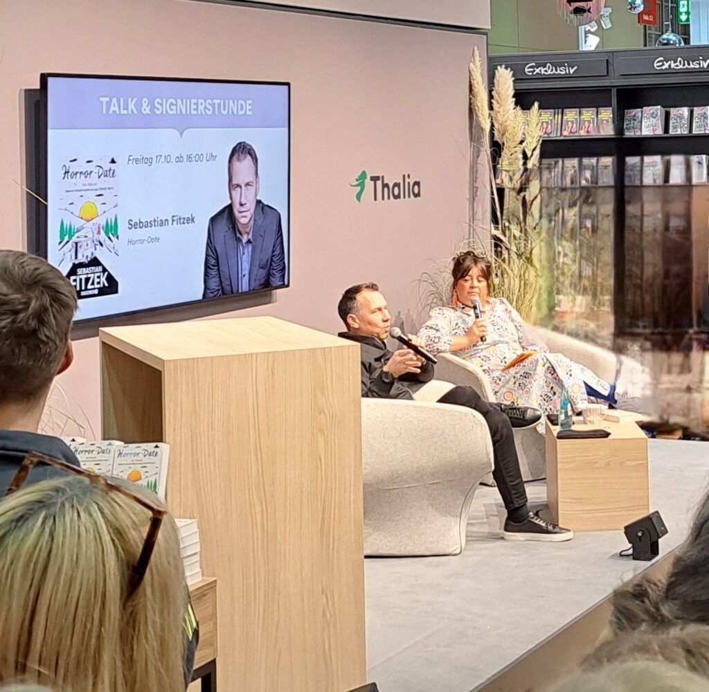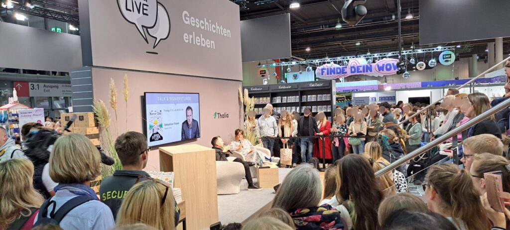In Halle 3.0 besuchten wir dann das Gespräch mit Sebastian Fitzek, bei „Thalia“. Okay, wir quetschten uns eher durch. 😉 Das seht ihr auch. An diesem Tag war es mir nicht vergönnt, ein gutes Foto von ihm zu machen.