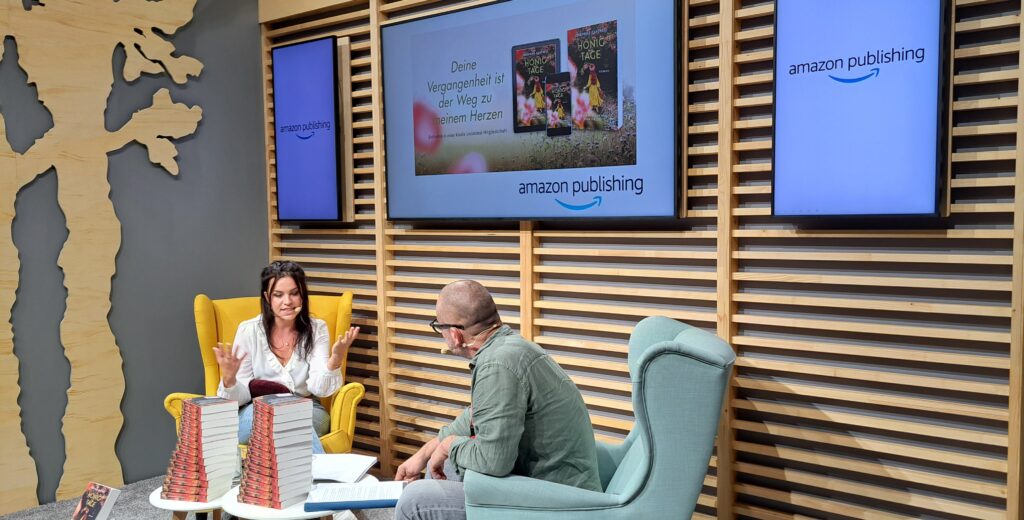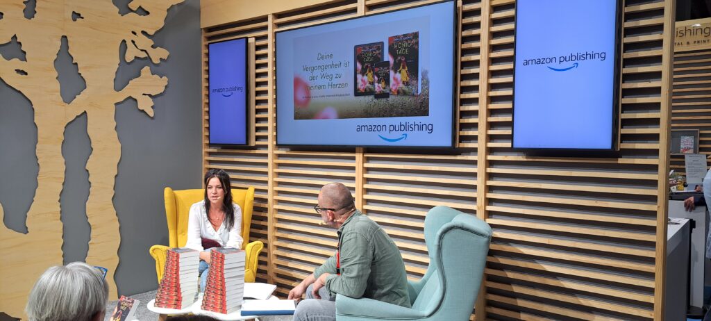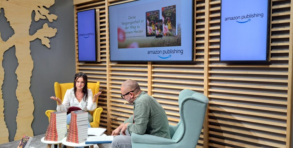 Bei „Amazon Publishing“ gab es sodann eine Lesung und Gespräch mit Josephine Cantrell über ihr Buch „Honigtage“. Kurz die Füße ausstrecken. Wir sind so viel gelaufen.