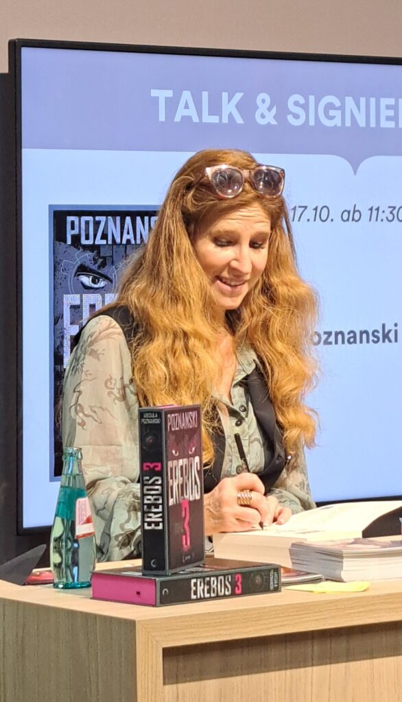 Ursula Poznanski bei „Thalia“ mit ihrem Buch „Erebos 3“. Oh man war das voll. Allgemein mussten Johanna und ich feststellen, dass bei „Thalia“ immer viel los war.