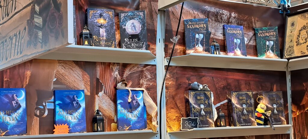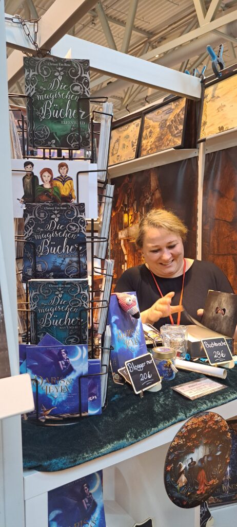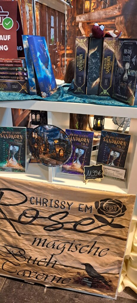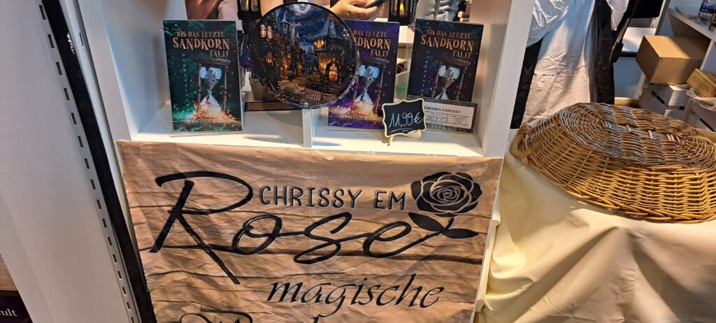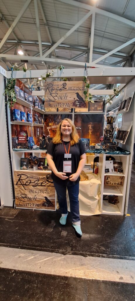 Letztes Jahr stellte ich ihren Stand vor. Den Bericht findet ihr unter: https://www.bettinalippenberger.de/2024/10/23/vorstellung-magische-buch-taverne-von-und-mit-chrissy-em-rose/