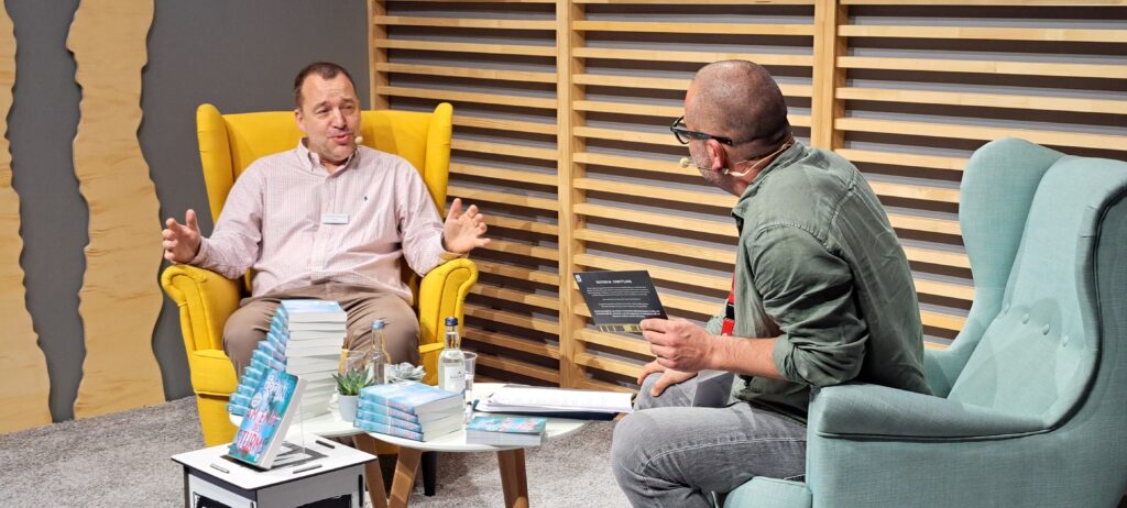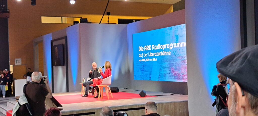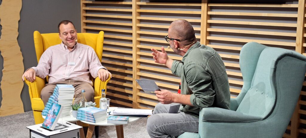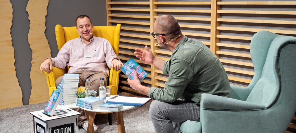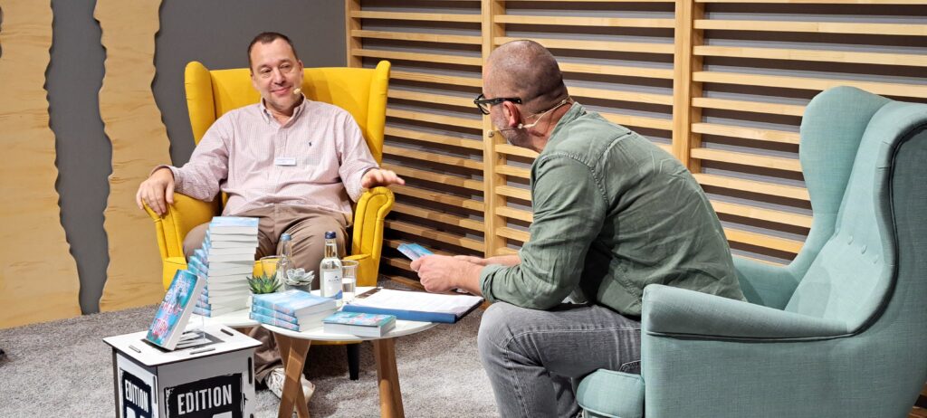 Chistian Berkel mit seinem Buch „Sputnik“ aus dem „Ullstein Verlag“. Im Gespräch auf der Literaturbühne. Bin so stolz auf dieses Foto. Herzlichen Dank Herr Berkel.