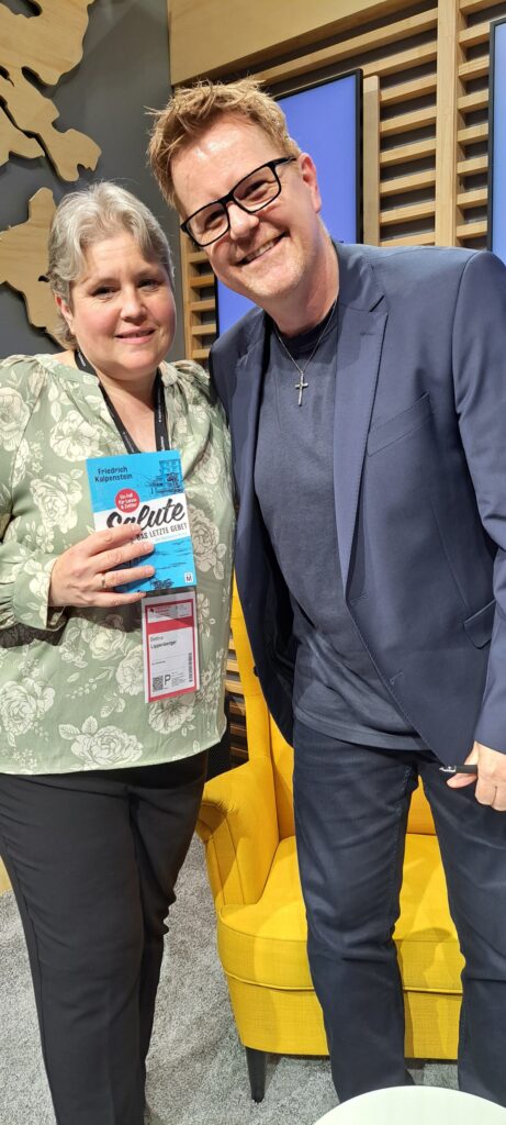 Johanna machte ein Foto von Klaus-Peter Wolf und mir. Klaus-Peter kenne ich nun schon lange. Genau wie seine liebe Frau Bettina Göschl. Es ist so eine Freude, kurz mit ihm zu reden. Denn auf ein signiertes Buch von ihm, warteten sehr viele. Gleich darauf ging es weiter für uns.