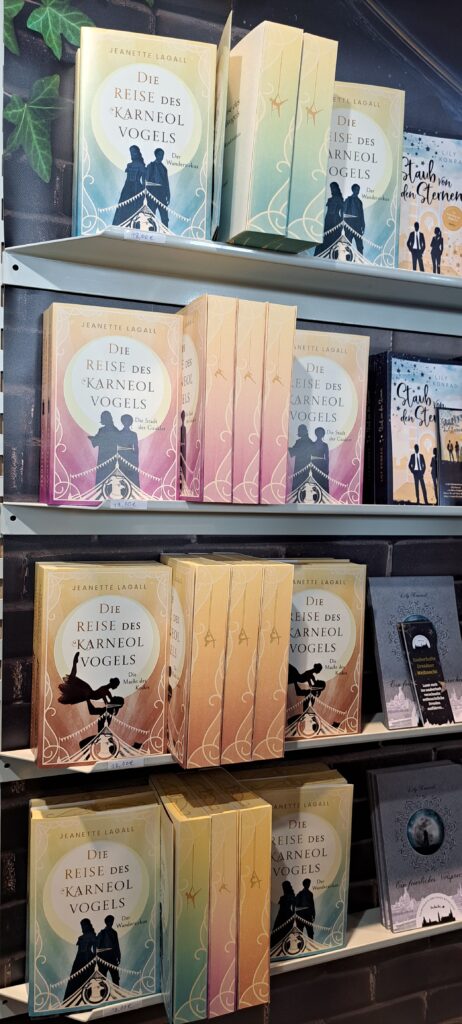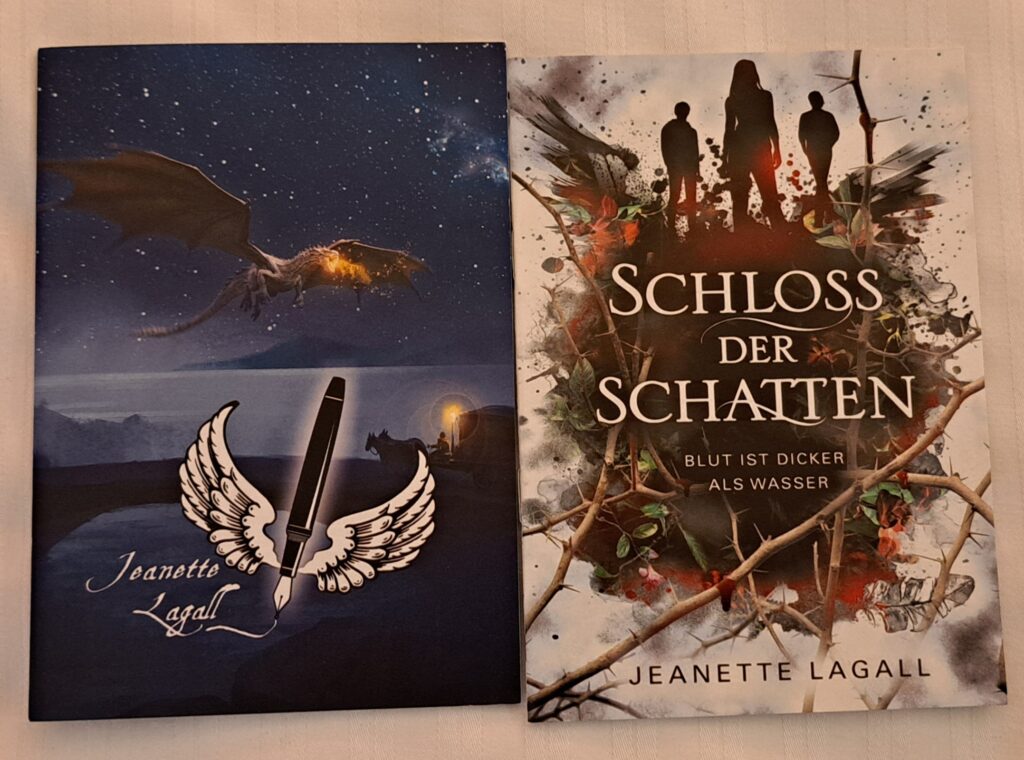 Die liebe Karin, hat sich bei Jeanette Lagall, „Schloss der Schatten – Blut ist dicker als Wasser“. gekauft. Habe mich so für sie gefreut. Sie hat sogar den Prägestempel im Buch. Wie cool!