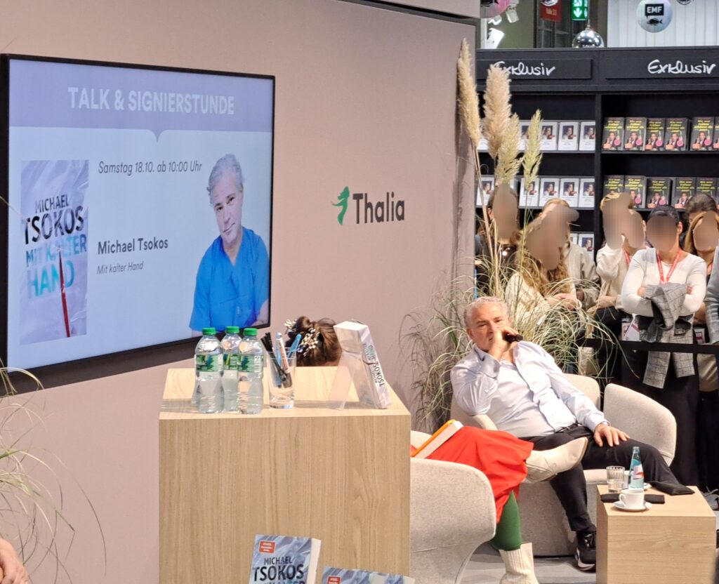 Danach tigerten wir zu Michael Tsokos – Talk & Signierstunde bei „Thalia“, um ein Foto zu machen. „Mit kalter Hand“ heißt sein neuestes Buch.