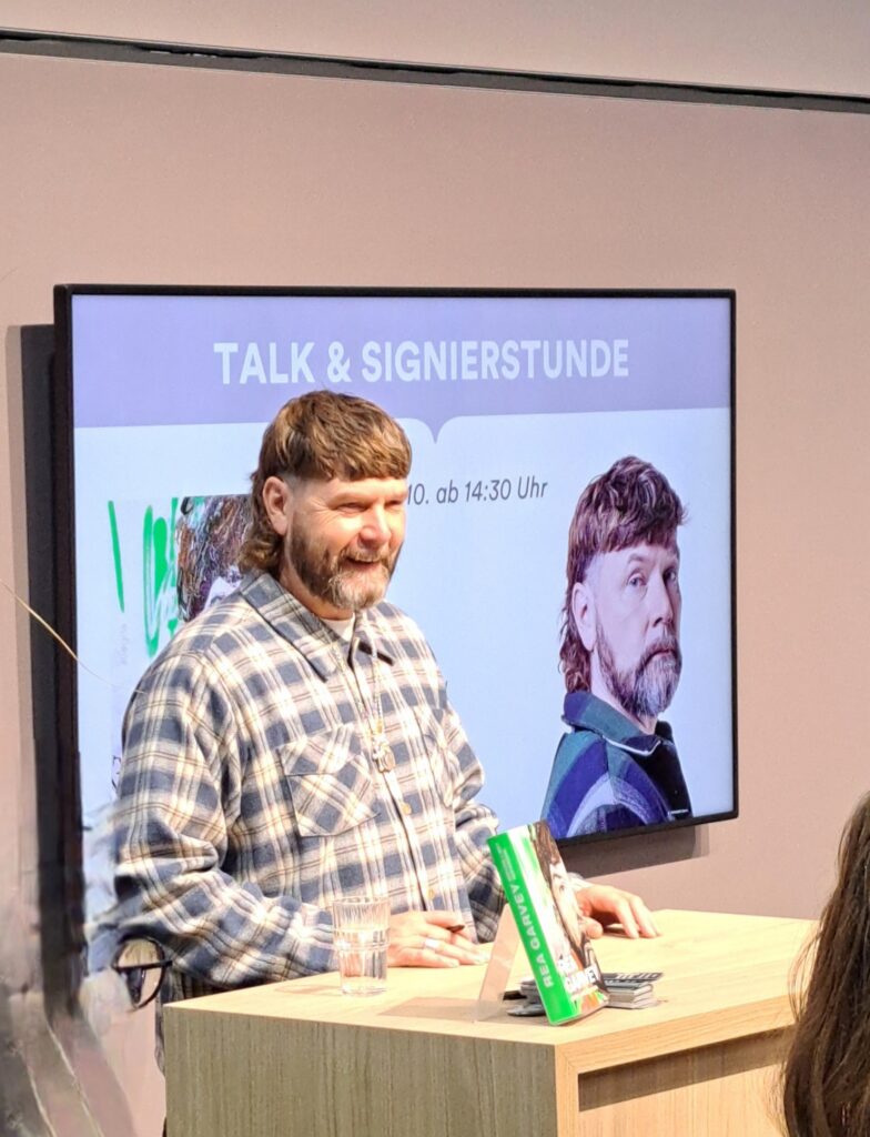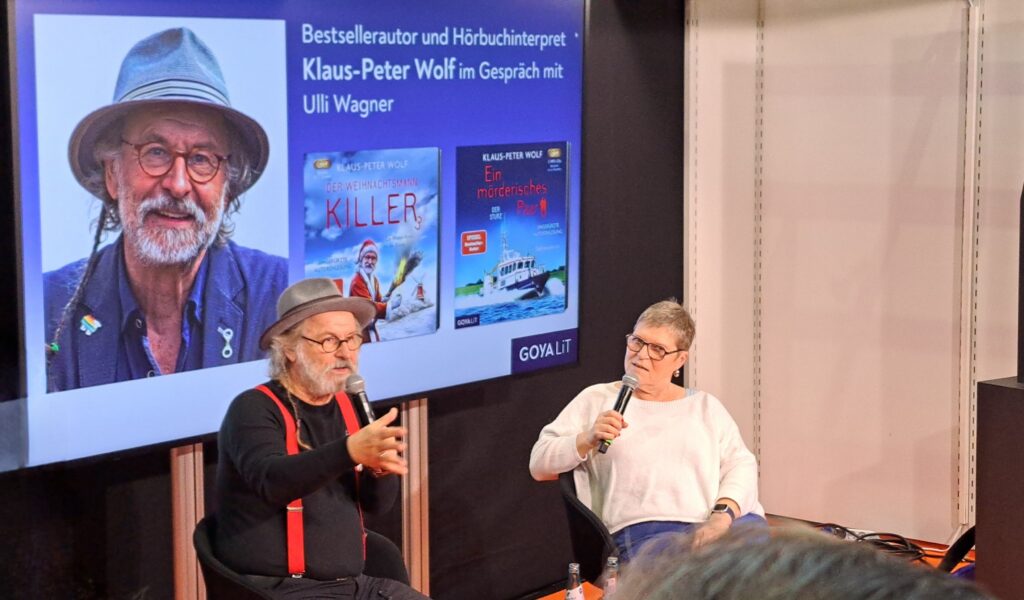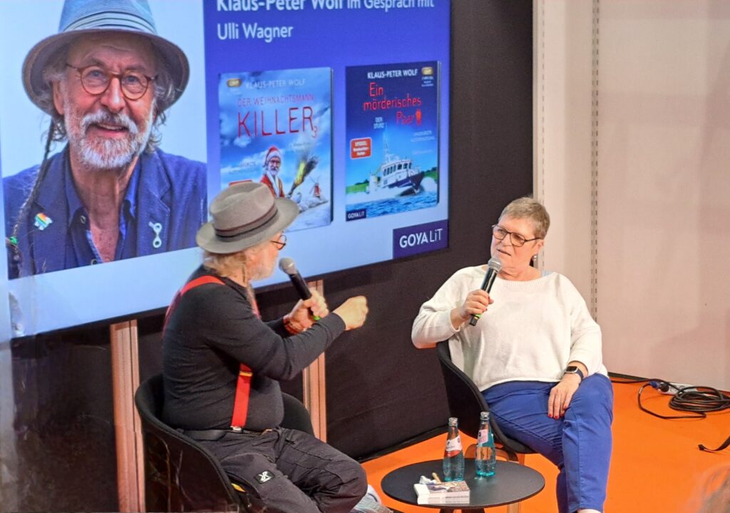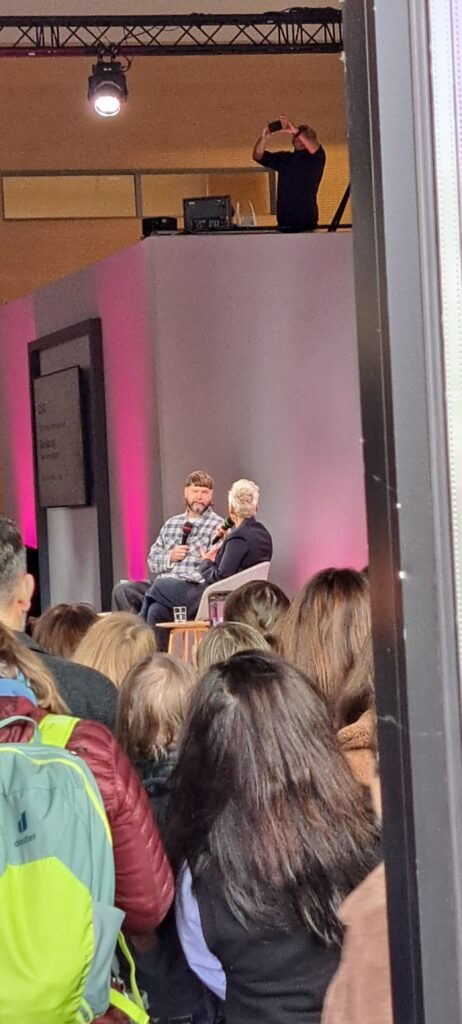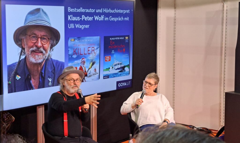 In der Halle 3.1 ist Klaus-Peter Wolf im Gespräch mit Ulli Wagner. Da musste ich mich ganz schön strecken um ein Foto zu bekommen.