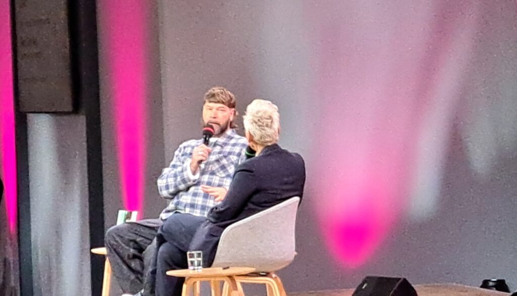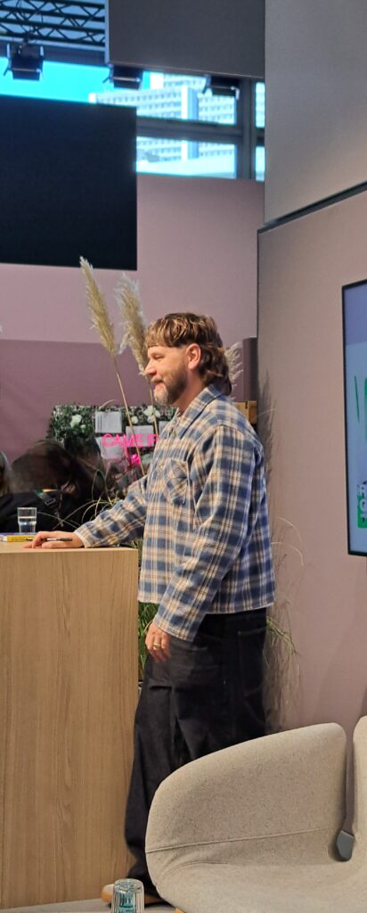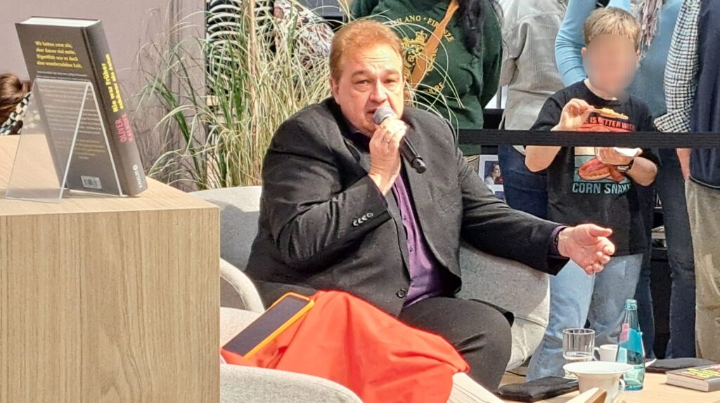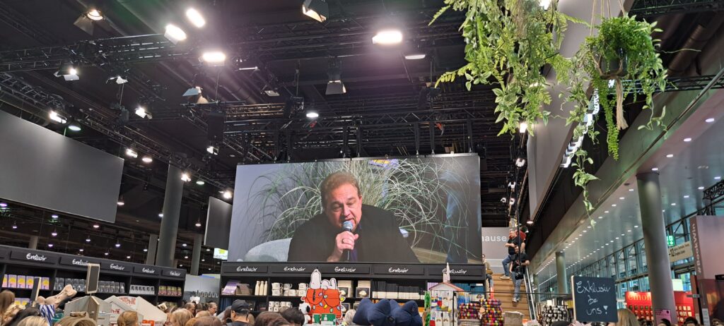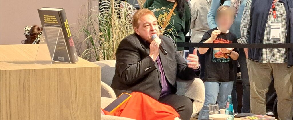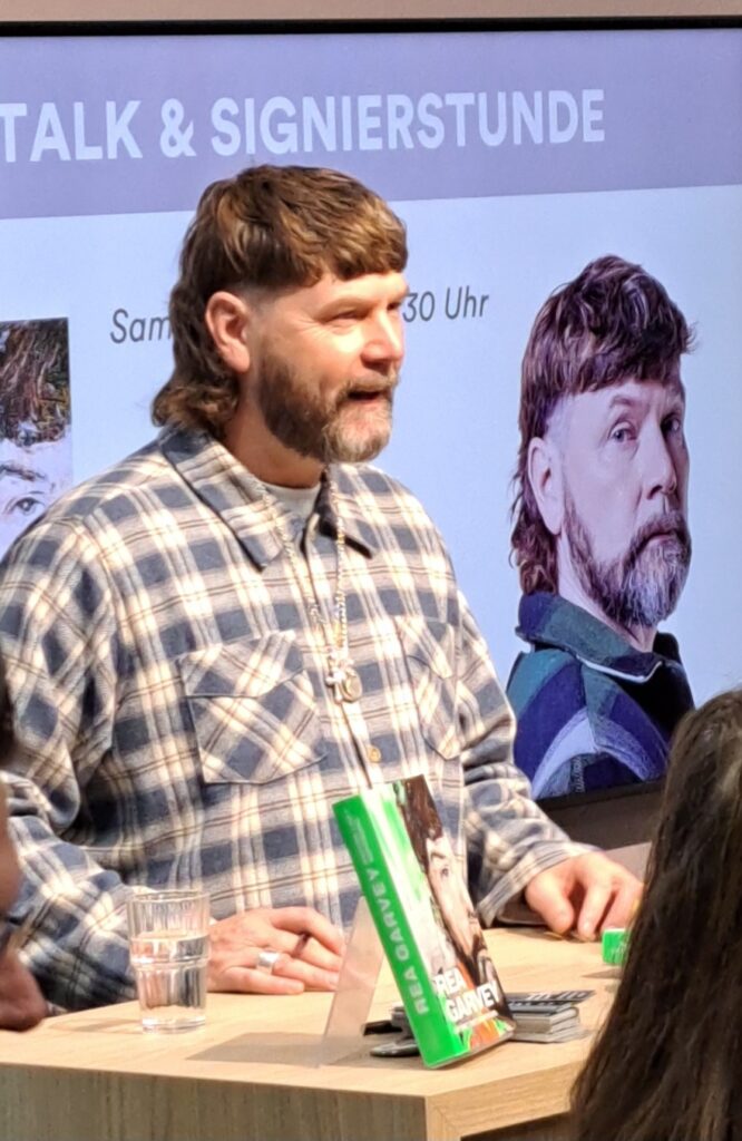 In der Halle 3.1 ist Klaus-Peter Wolf im Gespräch mit Ulli Wagner. Da musste ich mich ganz schön strecken um ein Foto zu bekommen.
