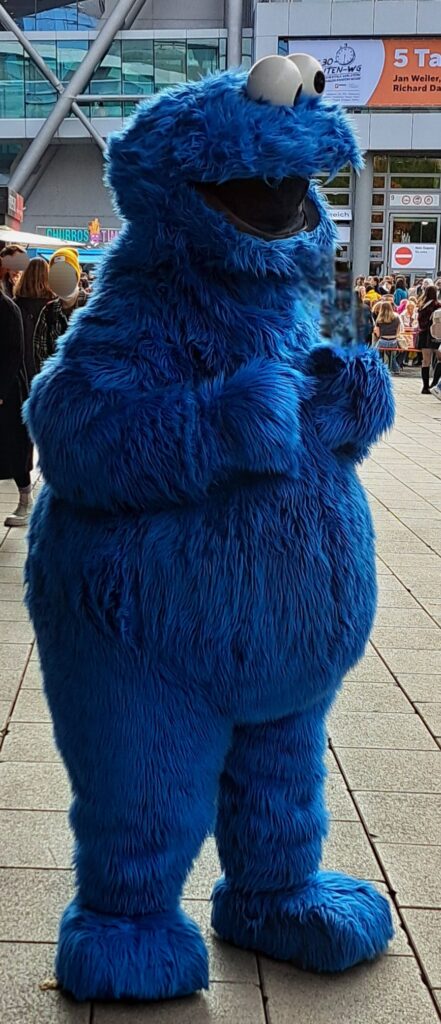 …und das „Krümelmonster“. Auch Karin machte ein Foto von ihm. Hut ab, unter dem Kostüm ist es sicher super warm.