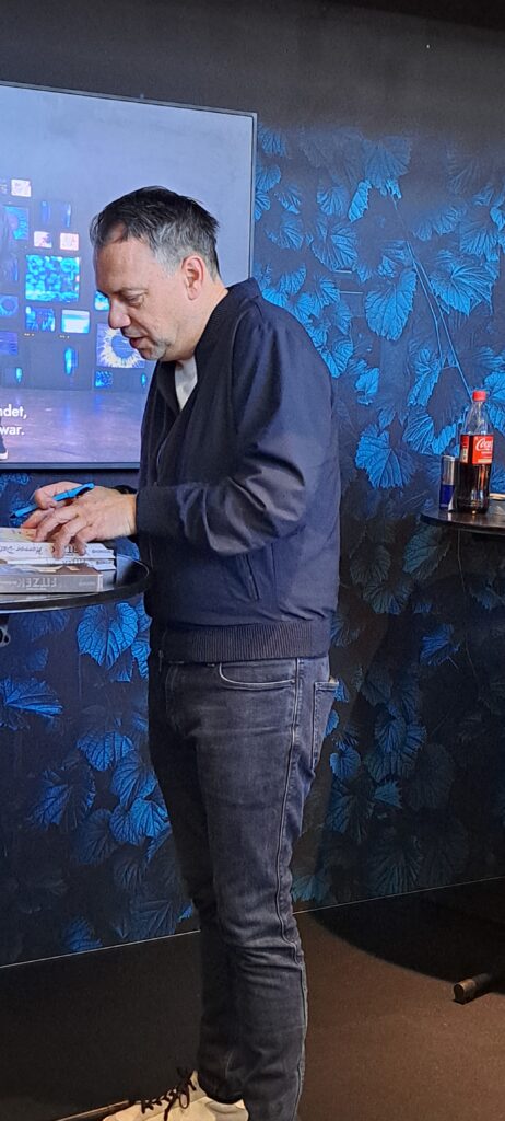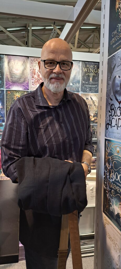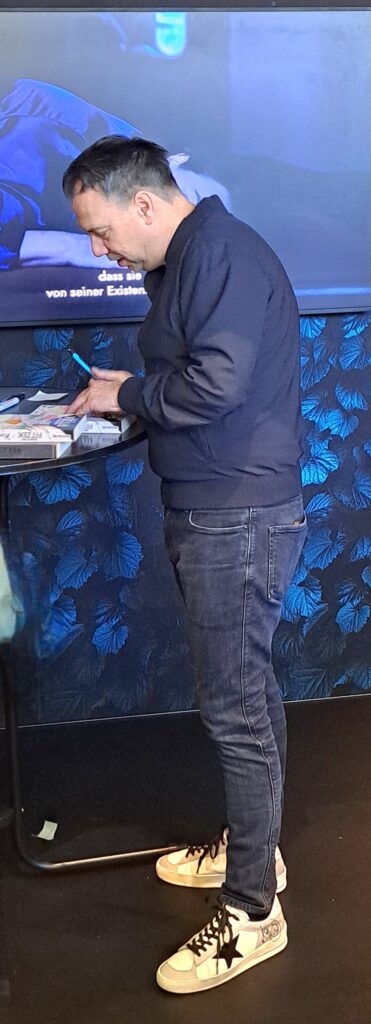 Eine große Ehre. Danke Kai Meyer. Bin so froh über dieses Foto. Damals bei der „BuCon“ in Dreieich, haben wir uns etwas unterhalten. Weshalb ich mich riesig freue, wenn auch nur kurz, Sie wieder getroffen zu haben. Hier beim „Drachenmond Verlag“ zur Signierstunde.