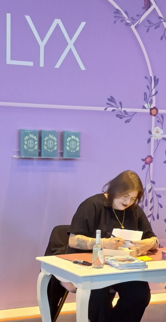 Anabelle Stehl signiert ihr Buch „Novel Haven“.