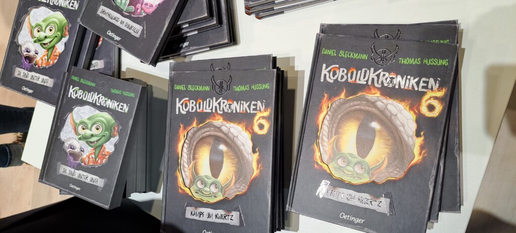 Beim vorbei schlendern entdeckte ich noch „Koboldkroniken“ von Daniel Bleckmann und Thomas Hussung. Der Andrang war groß. Es ist so toll! Ich freue mich über ihren Erfolg.