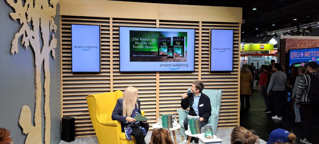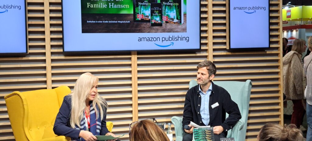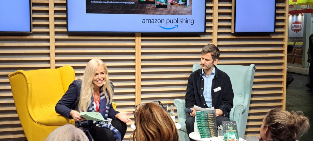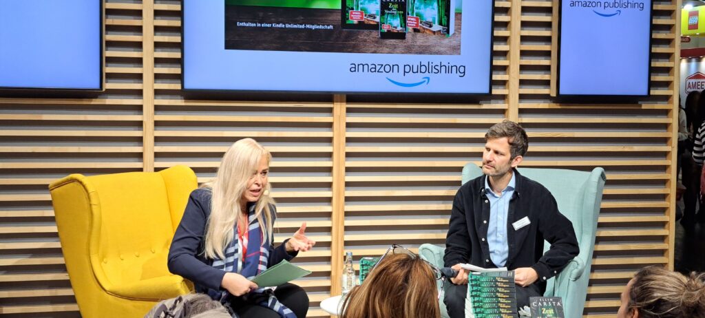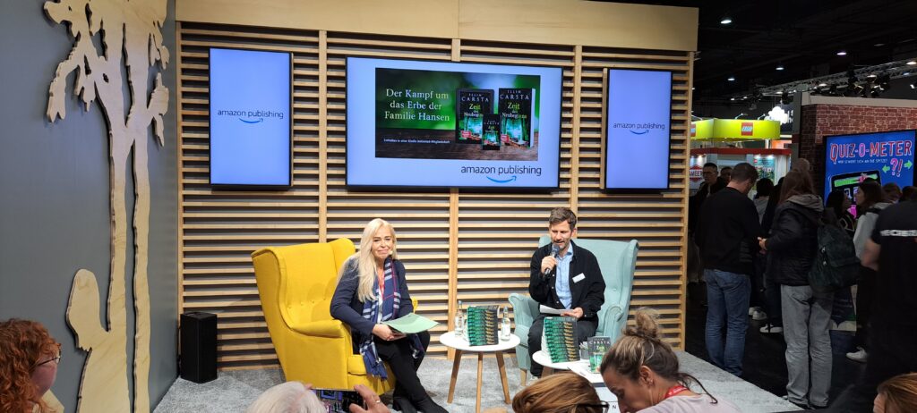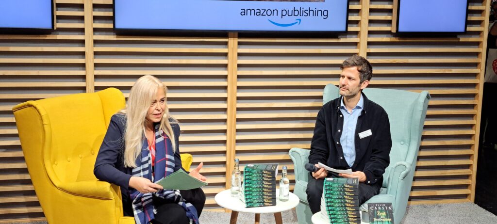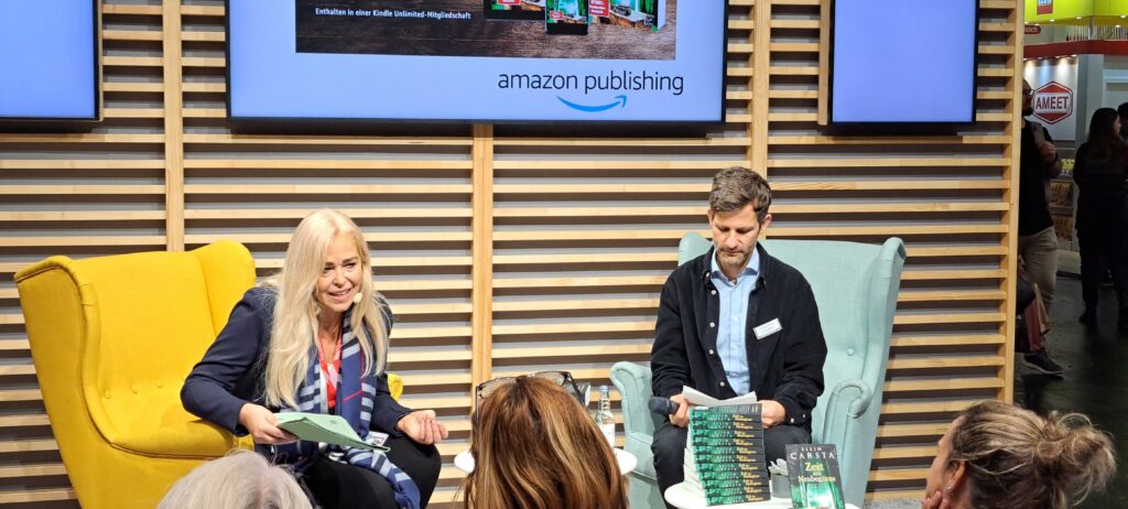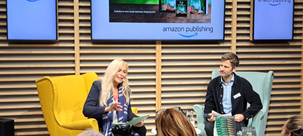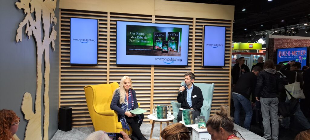 Eigentlich wollte ich mich von meiner lieben Ellin Carsta verabschieden, denn es war ihr letzter Tag auf der Messe. Doch ich konnte mich dann doch nicht lösen. Sie las aus ihrem Buch „Zeit des Neubeginns“ bei „amazon publishing“.