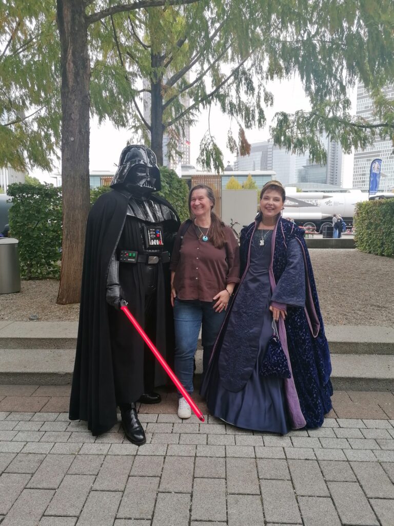Ihr könnt es nicht glauben, wir sind Darth Vader begegnet. Zum Glück hatte er eine schöne Frau neben sich, die hat ihm wohl Einhalt geboten. Karin hat sich mutig neben ihn gestellt. Puh…er war sogar richtig nett. 😁