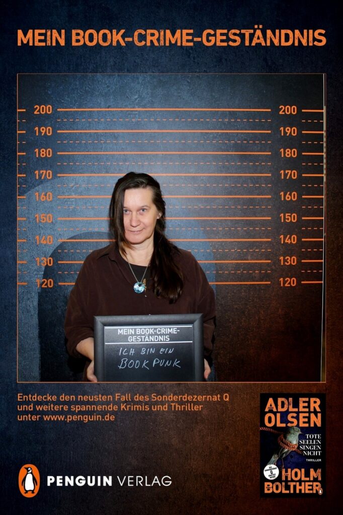 Beim „Penguin Verlag“ gab es ein Verbrecherfoto von Karin. 😄