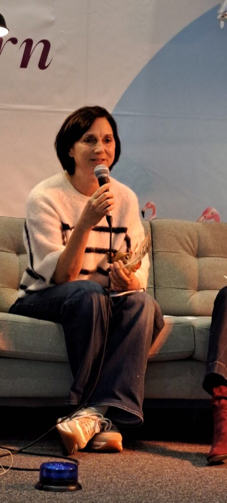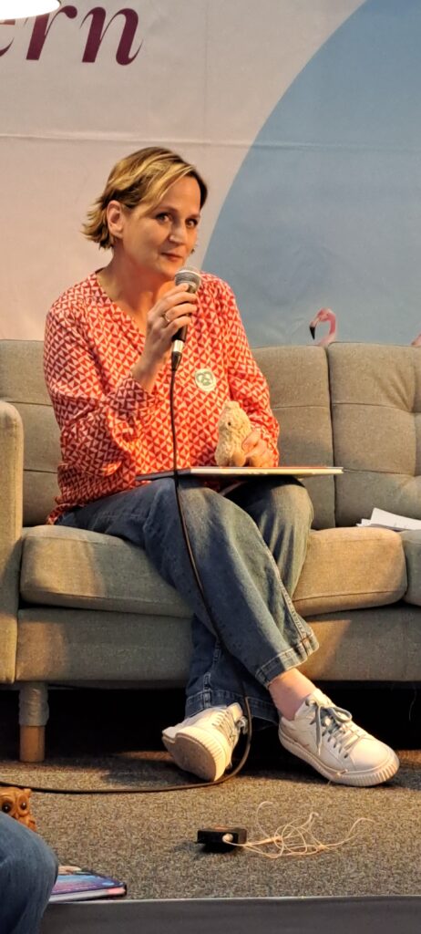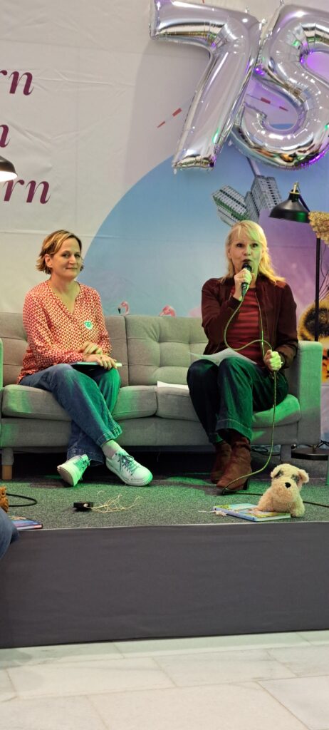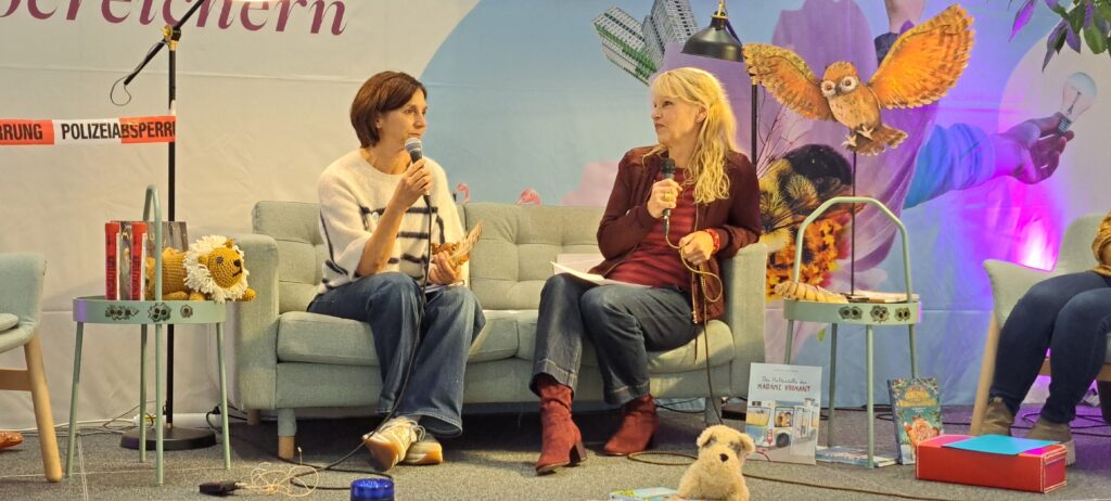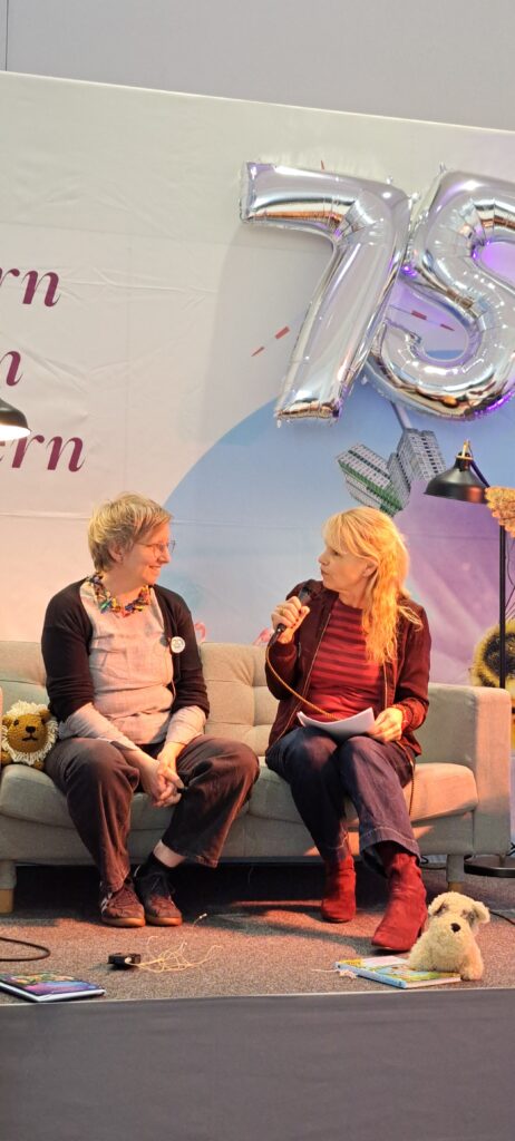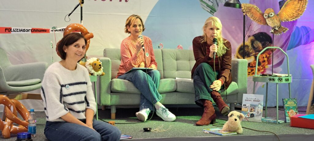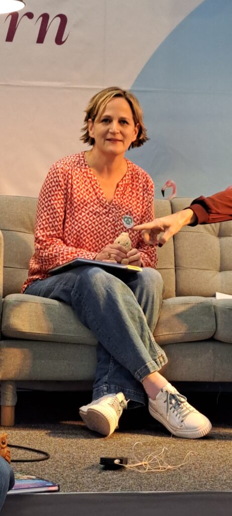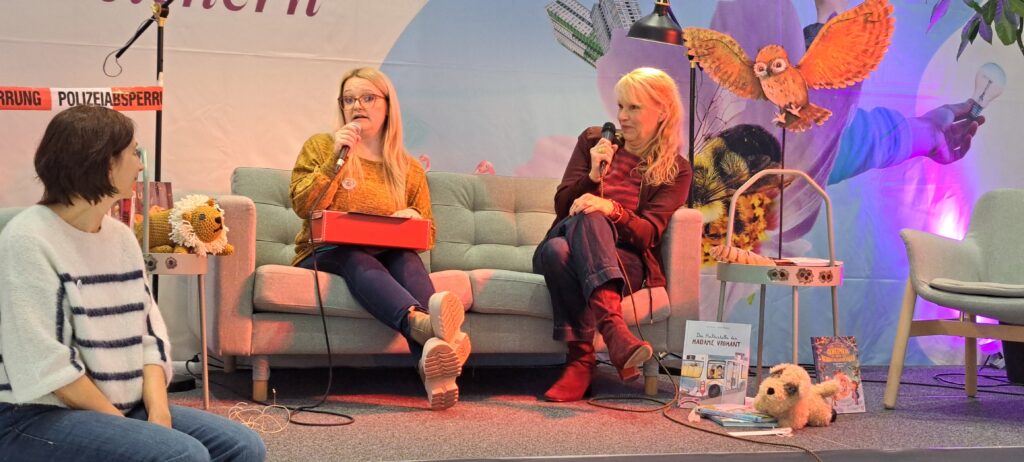 Barbara sagt noch etwas, was ich ganz super finde. Sannes Bücher erscheinen, in ganz vielen Ländern. Niederlande, Spanien, Rumänien, Großbritannien und in den USA. Sie fragt Sanne ob sie meint, das in diesen Ländern die Kinderliteratur ernster genommen wird, als bei uns?