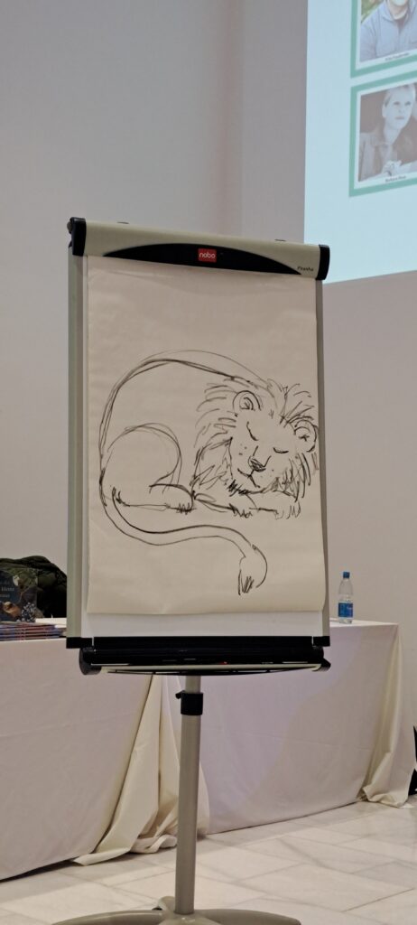 Während Jonna gelesen hat, hat Sanne einen schlafenden Löwen gezeichnet. Ich finde ihn großartig. Was sagen die Kinder? Alle finden ihn toll!