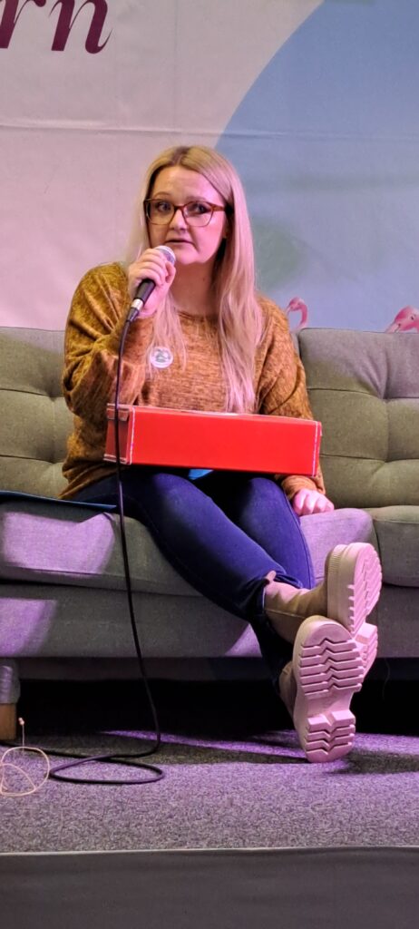 Barbara Rose stellt nun Johanna K. Fischer vor. Johanna lebt nicht in Stuttgart sondern bei Ludwigsburg in Kornwestheim. Dort wohnt sie mit ihrer Familie. Interessant findet Barbara, das auch sie Krankenschwester war. Johanna hat dann ein Fernstudium für Kinder und Jugendbuchliteratur absolviert, und schreibt am Liebsten für Kinder, lektoriert aber auch. Barbara möchte gern das Johanna, über den Inhalt ihres ganz besonderen Koffers spricht.