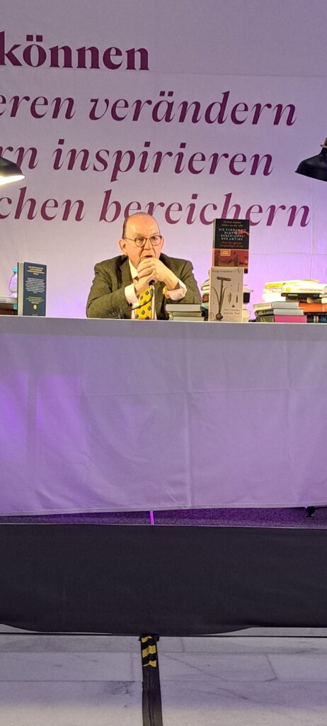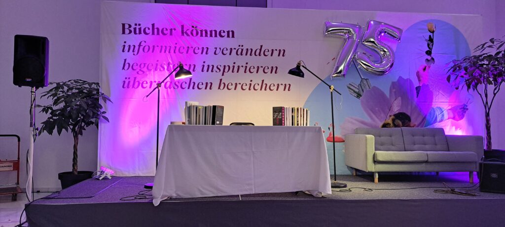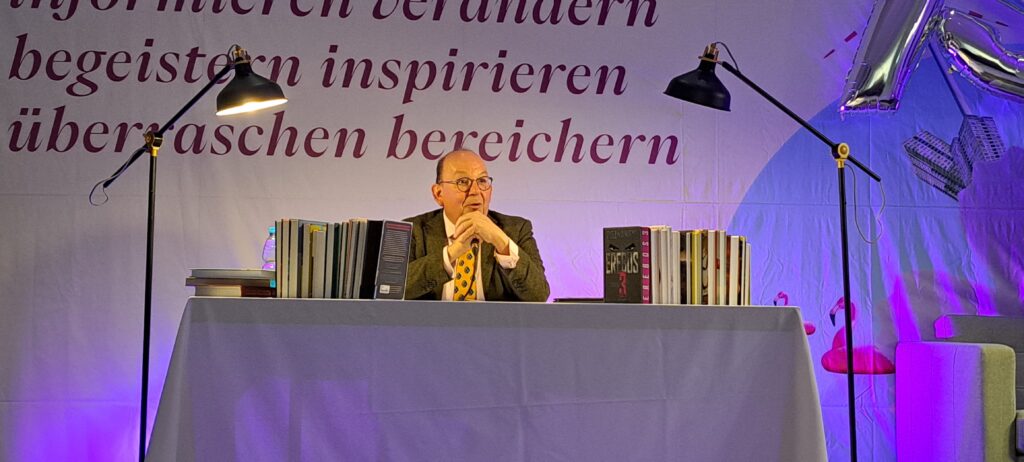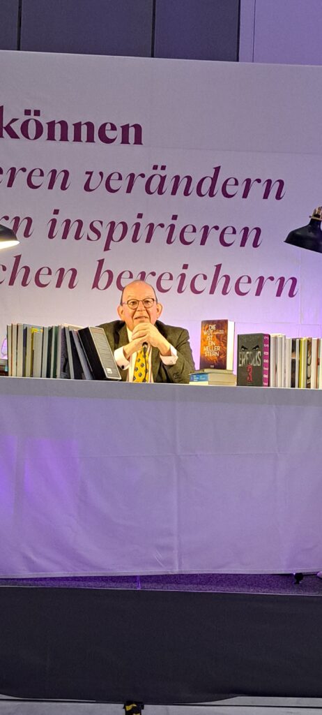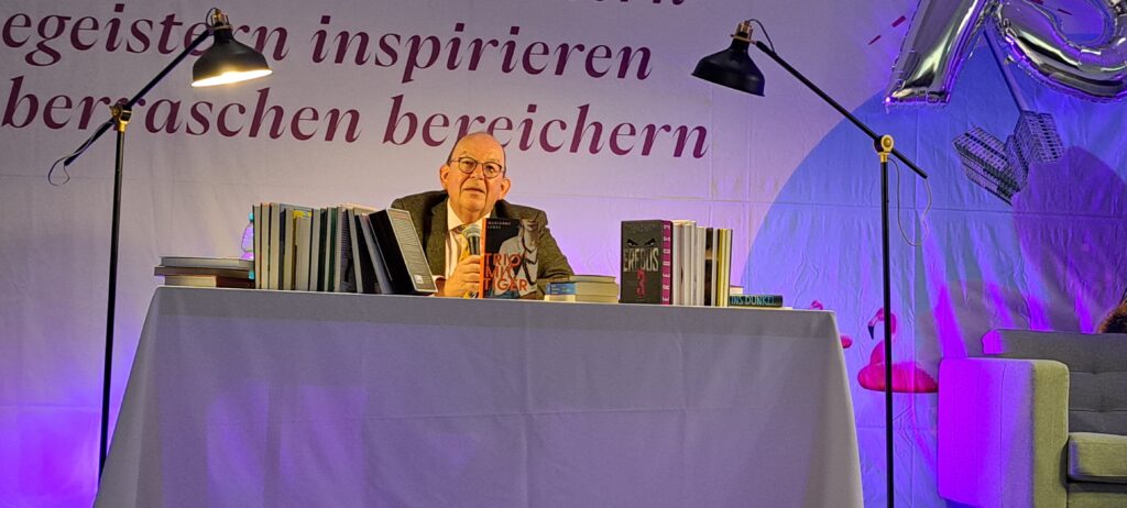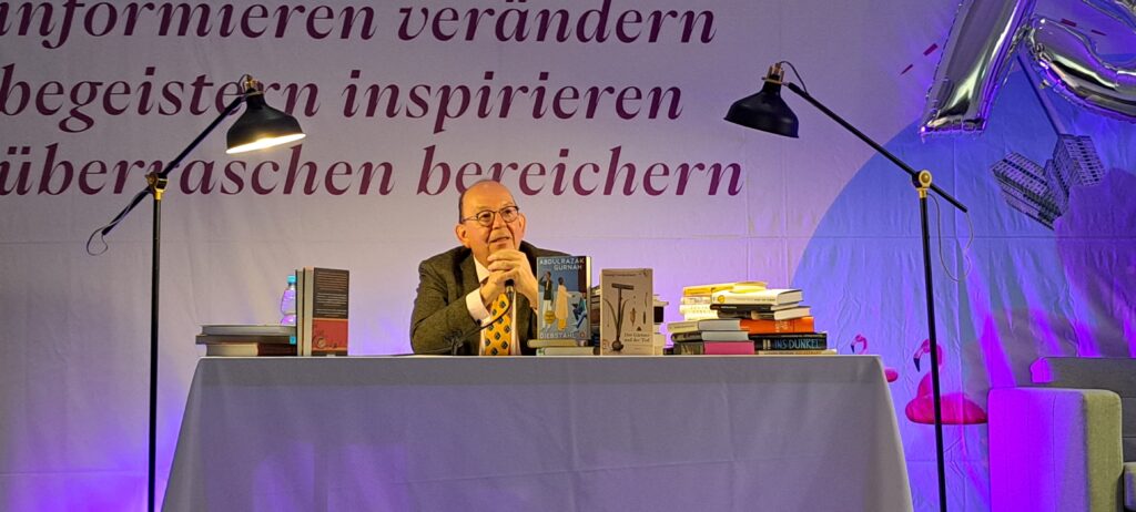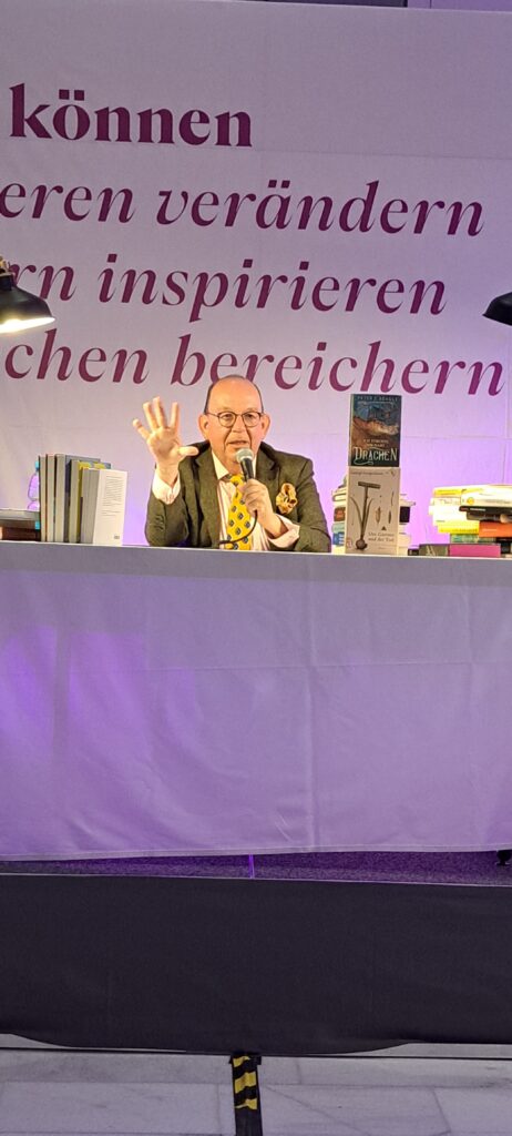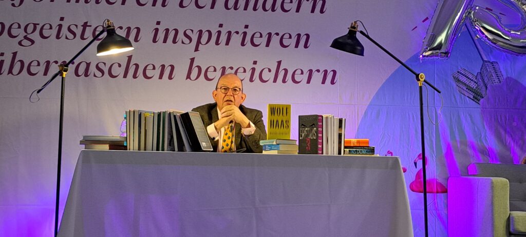 Er machte noch Veranstaltungstipps zu Anselm Grün. Berichtete aber auch das die Veranstaltung mit Denis Scheck und einige Tage später, mit Caroline Wahl ausgebucht waren.